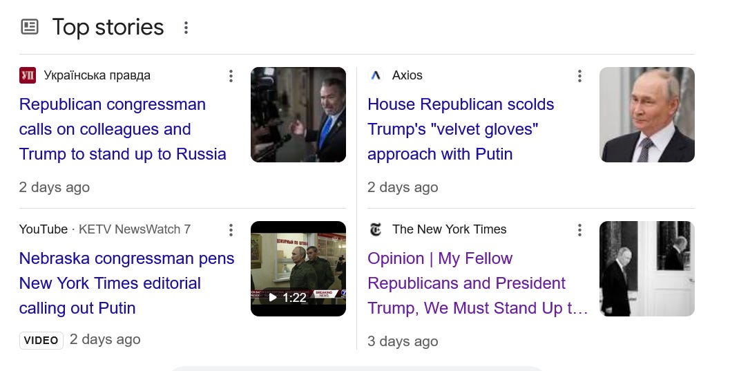 This newfound weakness and political struggle has loosened Trump’s grip on Washington as we are seeing bolder dissent coming now from both Democrats and Republicans. Last week Susan Collins along with her Democratic colleague Patty Murray wrote a letter to the White House suggesting that the Trump-Musk impounding/stealing of Congressionally mandated spending was illegal, an incredibly aggressive assertion from a prominent Republican; Senate Armed Services Committee Chairman Wicker along with his Democratic colleague Jack Reed demanded a formal Pentagon IG investigation into Signalgate. House Republican Don Bacon took to the NYT to denounce Trump’s outrageous and dangerous fealty to Putin: