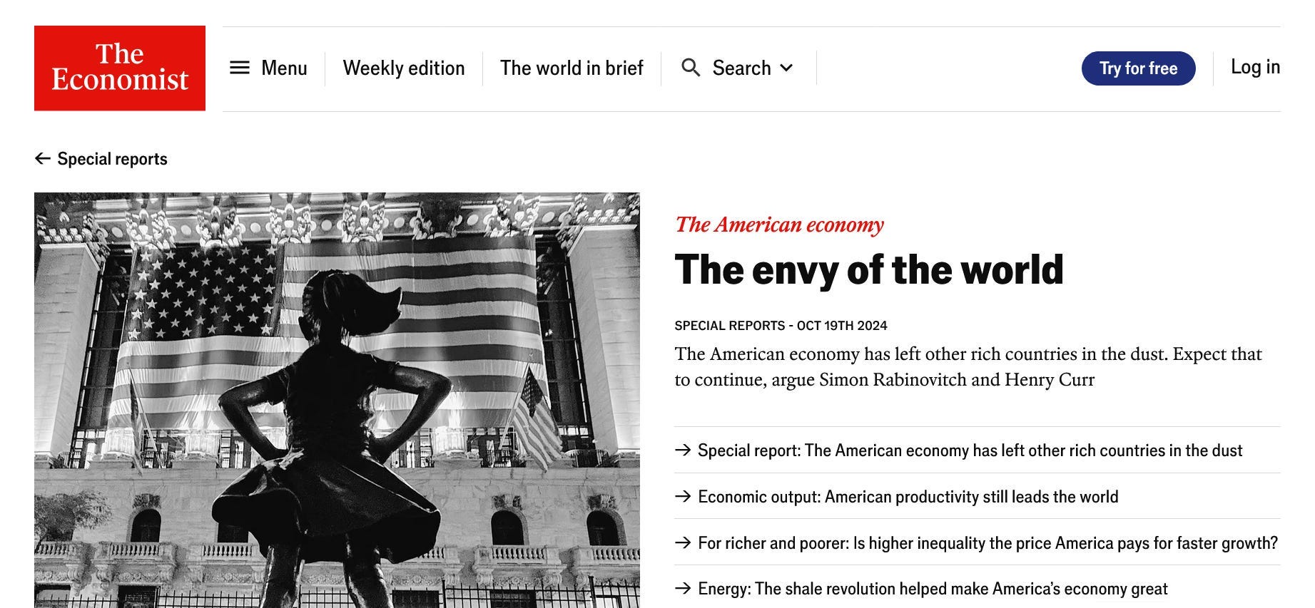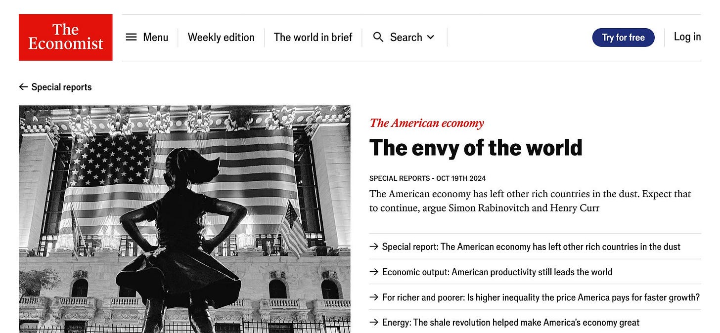 Democrats And Our Pro-Democracy Movement Have Had Our First Good Week In Some Time - The dynamic driving all of our politics right now has been the rapid and catastrophic failure of Trump’s economic policies. The economy Trump inherited was the strongest of any developed nation. Here is an Economist image from October calling our economy “the envy of the world.”