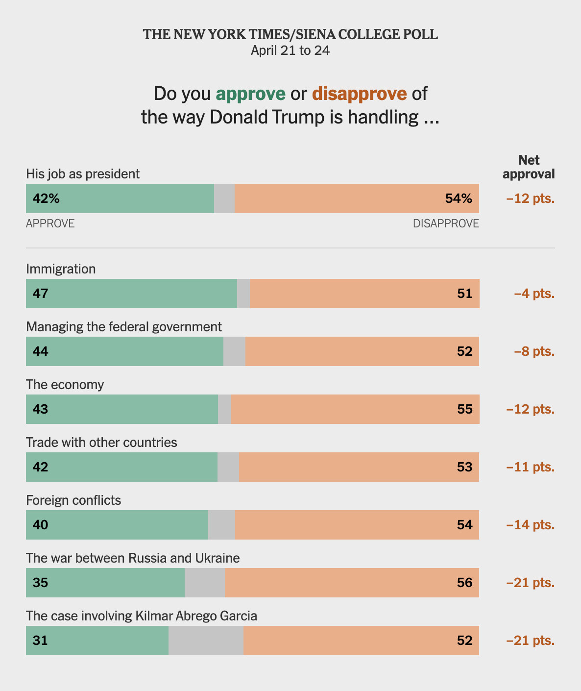 And as Mr. Trump’s administration has veered toward open defiance of court orders, a sky-high 76 percent of voters, and 61 percent of Republicans, said a president should not be able to ignore the Supreme Court.