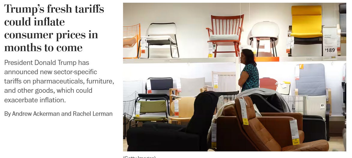 The Washington Post has a story this morning about how Trump’s terrible new tariffs announced Thursday are going to push inflation and prices even higher: