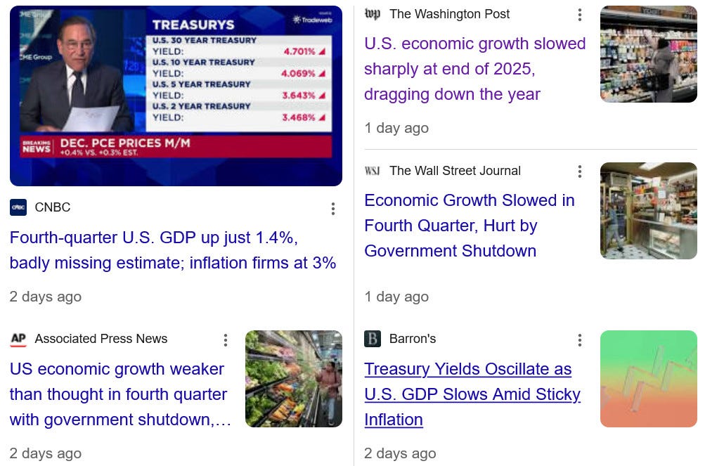 GDP growth slowed dramatically in the 4th quarter, and came in much lower in 2025 than 2024: