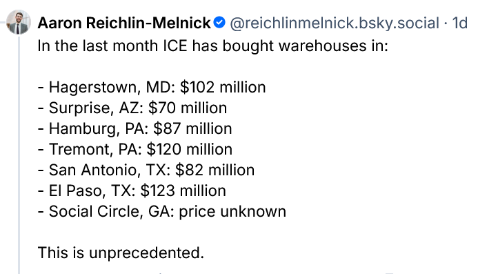I asked Aaron to come by after reading his excellent Bluesky thread detailing what we are now learning about ICE’s dramatic expansion of his detention centers.