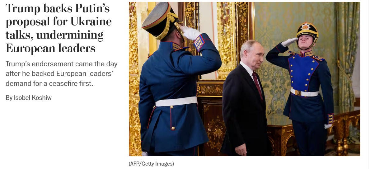 Second, the course correction is largely on the surface, and all the ugliness of their project remains. $400m planes for him and 5 pencils, 2 dolls and a broken air traffic control system for all us. Big tax cuts for him, higher prices and worse health care for all of us. While he gets more, lots more, we get to pay more and get less. Yesterday, Trump once again undermined our European and Ukrainian allies, and once again cravenly sold out America and the West to Putin: