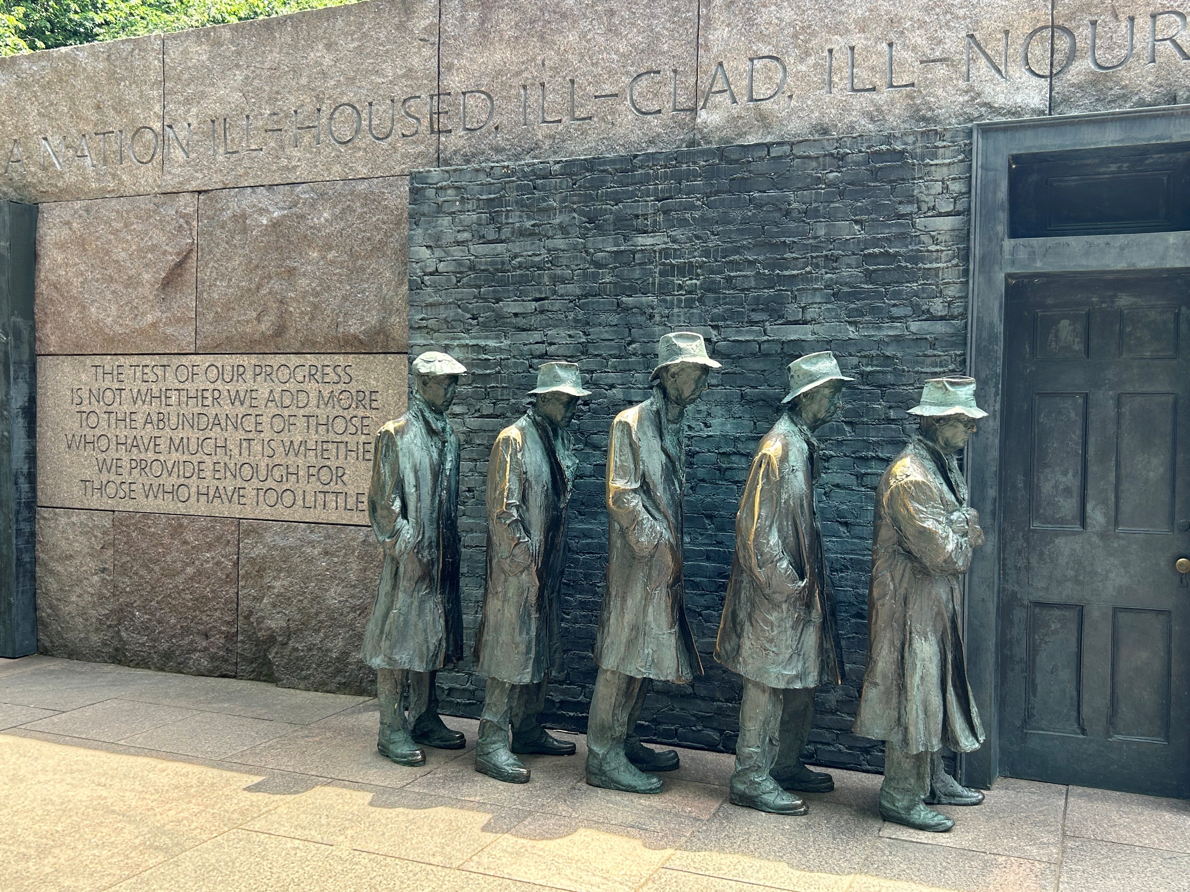 Finally, my wife and I did one of our periodic hikes of the National Mall yesterday. I will be sharing some photos from our visit there in the coming weeks. Here’s one of my favs from the FDR Memorial. FDR’s words still speak to us across these many generations: