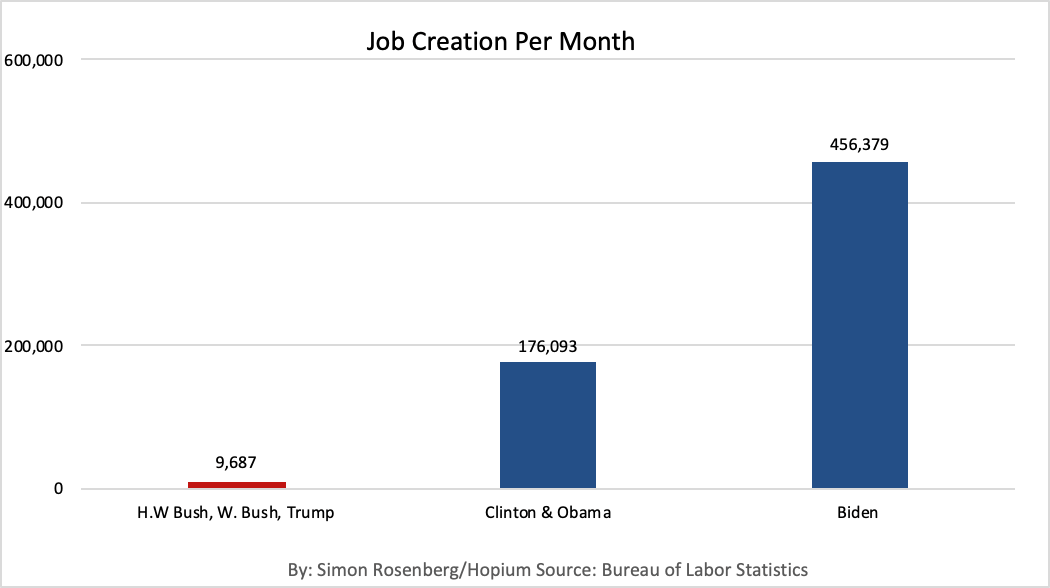 Look at the jobs created per month over these Presidencies - Rs at just 10k per month over 16 years. Biden is running at 50 times that so far. Yes, 50x! The jobs created just this past month - 209 - is almost YEARS of job growth under these last 3 GOP Presidents.