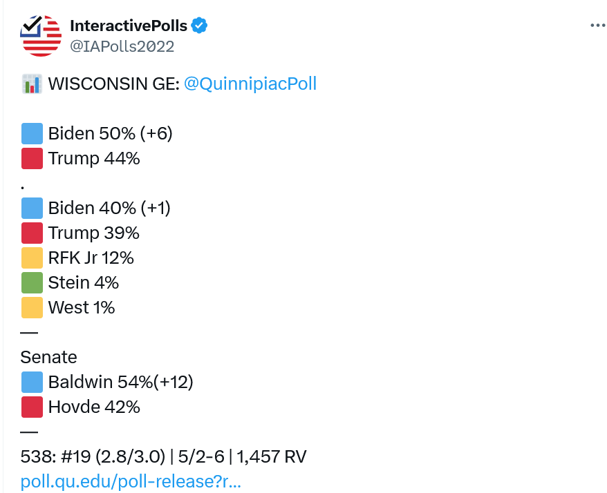 Biden Up In New WI Poll, "Great American Comeback Story," Careful W/Polling Averages
