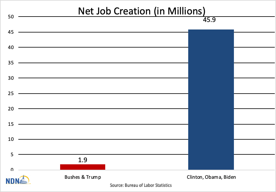 Biden's 12.1m jobs is 6 times as many jobs as were created in the 16 years of the last 3 Republican Presidencies, combined. It is also millions more than were created in the entirety of any of their three individual Presidencies. Many millions more. Since 1989 and the end of the Cold War, the US has seen 48 million new jobs created. Remarkably 46 million of those 48 million were created under Democratic Presidents, 96%.