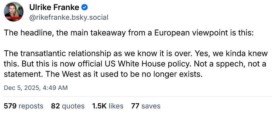 Last night the regime released an annual update of our National Security Strategy. We will have time to parse through it in the days ahead. But it is a confirmation of the incredibly dangerous place Trump is trying to take us. Here’s the first few graphs of the first NYT article on it this morning: