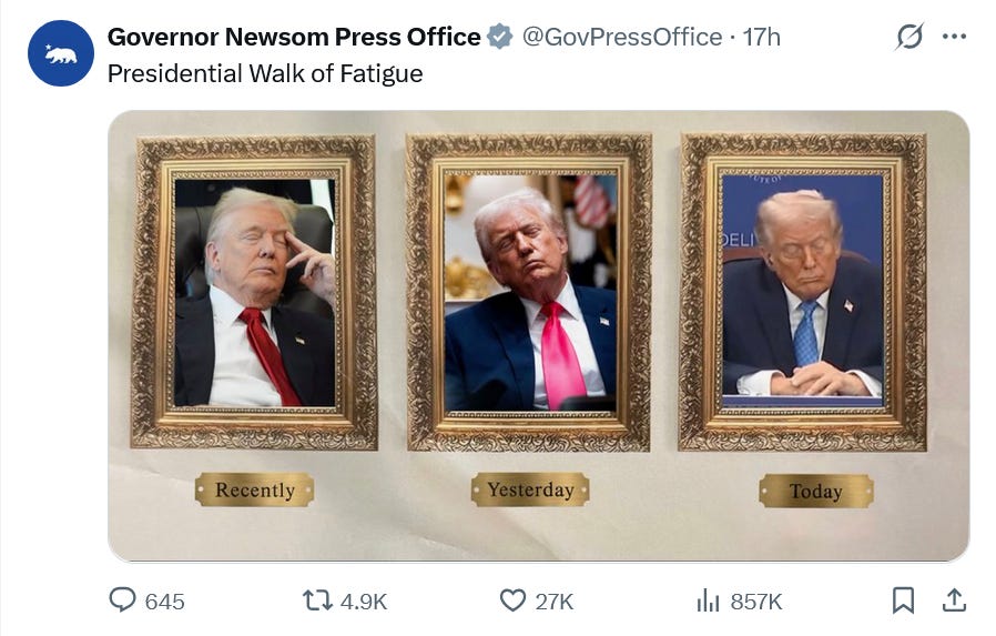 The success of the Democrats on the House Oversight Committee, led by Ranking Member Rep. Robert Garcia, in bringing the Epstein scandal to light and undermining their rancid cover-up of these crimes, is another great example of how we must move forward now. As was our fight over the ACA subsidy cuts and the shutdown, even though it ended prematurely. As has been our gritty fight led by the Texas Dems, JB Pritzker, Gavin Newsom and the House Dems against the illicit effort to steal Congressional seats next year. As has been the many successful legal challenges of our Dem AGs and other legal orgs that have blocked terrible policies and hamstrung the regime again and again. As has been Governor Newsom’s incredible innovation in the information domain.