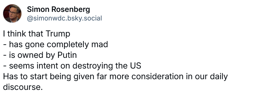 3 - Loudly Protest Trump’s Embrace of Russia and Abandonment of NATO and Europe - Let your electeds know you are outraged by traitorous Trump’s selling out of Zelenskyy, abandonment of Europe and embrace of Putin; and that we cannot accept this level of appeasement of someone who is a clear enemy of America and the West, and certainly not an ally. Demand that Trump not let his Saudi meeting w/Putin become our Munich; demand that he not become our Neville Chamberlain; demand that we rejoin our European and NATO allies in support of Zelenskyy and democracy here and everywhere. The country is not with Trump’s embrace of Putin and we must be very loud, very, very loud now. See my new essay on the need to support our allies and not surrender to Putin, and my new interview with Rep. Adam Smith, the Ranking Member of the House Armed Services Committee, one of the most important foreign policy voices in our party.