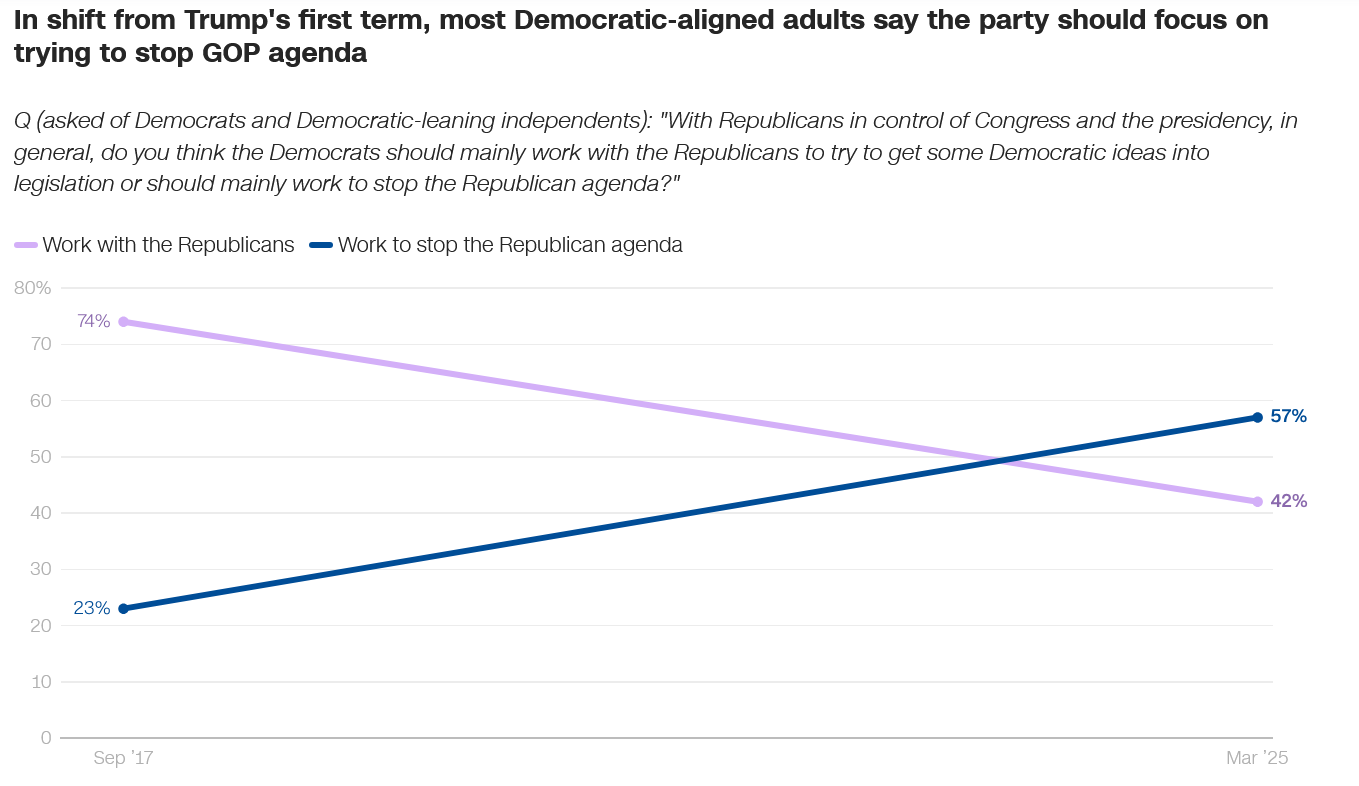 For as a CNN poll told us a few days ago Democrats are looking for their leaders to fight now: