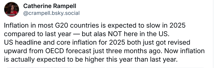 Trump’s Economic Wrecking Ball Keeps Wrecking Things For The Whole World - A Paris-based organization, the OECD, just released their revised global economic forecasts. Due to Trump’s reckless economic policies, global and US growth will be slower, and inflation here in the US higher. Here is what Washington Post/MSNBC commentator Catherine Rampell posted this morning: