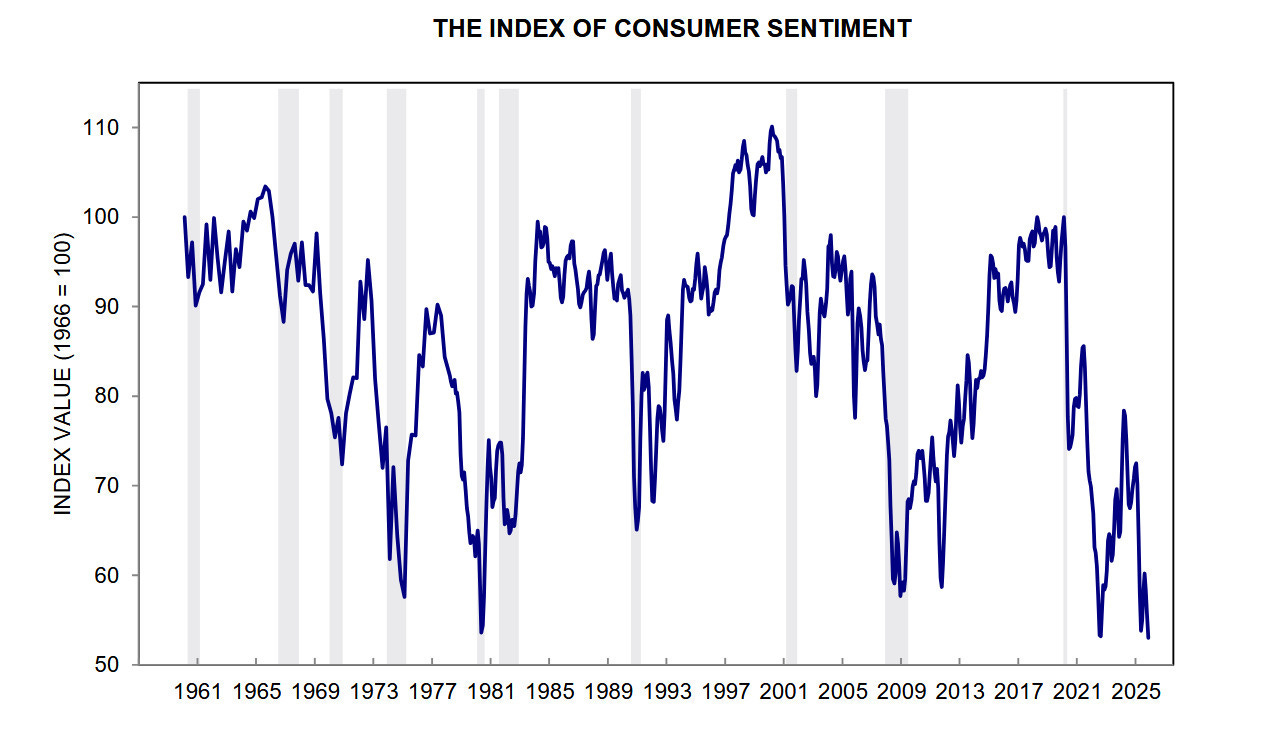 The University of Michigan’s Consumer Sentiment Survey just recorded it’s lowest reading in its 65 year history.