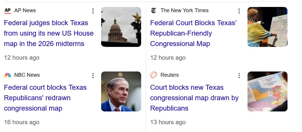 The losses, rebukes, and repudiations just keep piling up for Trump. The Senate voted to repeal his terrible tariffs. Republicans got blown out in the 2025 elections, losing everywhere by double digits. Polling tells us that Trump lost the shutdown fight to the Democrats, badly. His illicit prosecutions of his political enemies are falling apart. Members of his own party have challenged him and won, and others are issuing loud warnings about a mid-term blow out. He appears to have lost control over the House. Jeffrey Epstein, from the grave, has directly implicated him in his sex trafficking ring while raising questions about whether he shared kompromat on Trump to the Kremlin. The stock market has gotten wobbly. His mid-decade redistricting gambit has blown up in his face.