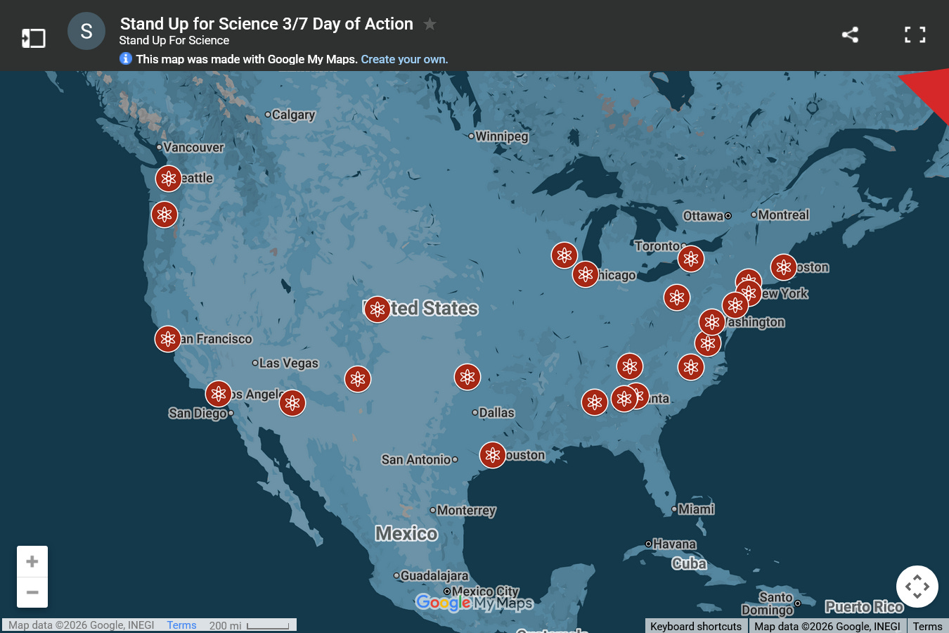 Our friends at Stand Up For Science are holding a National Day of Action on Saturday, March 7th. Events are getting scheduled all across the country: