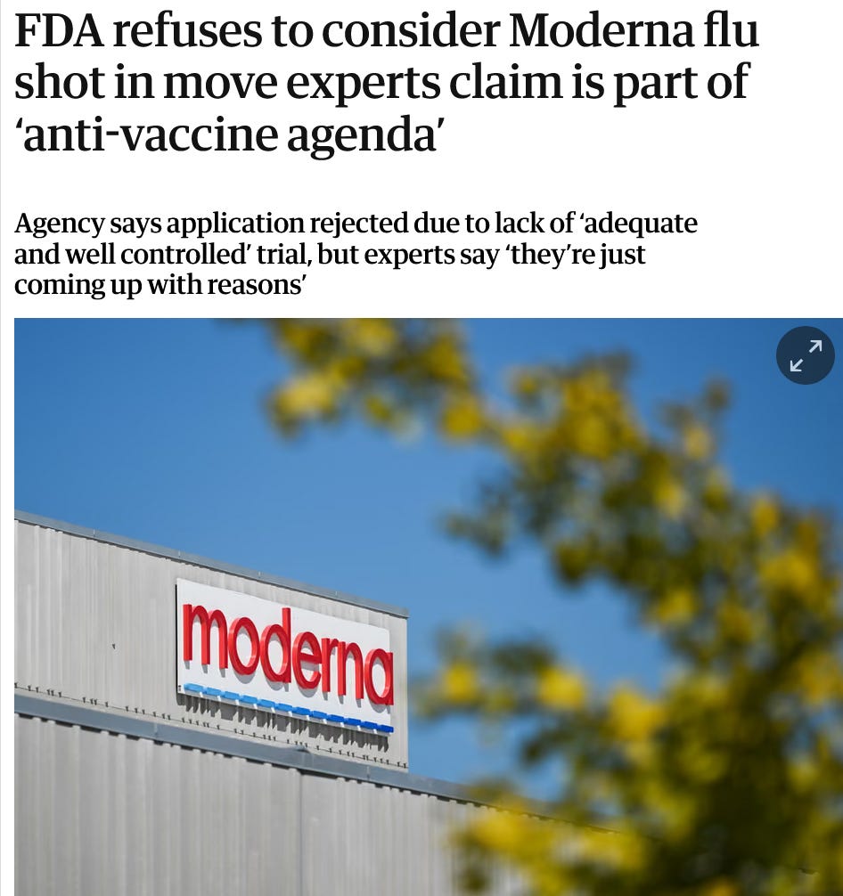 A senior US Food and Drug Administration (FDA) official says Moderna’s clinical trial on a new, potentially more effective flu vaccine was a “brazen failure” and that the FDA is now calling it into question.