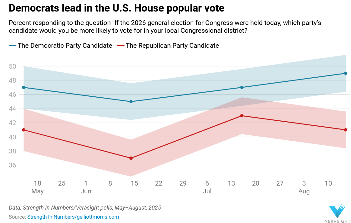 We lead by 8 points in the new Strength In Numbers monthly generic ballot question: