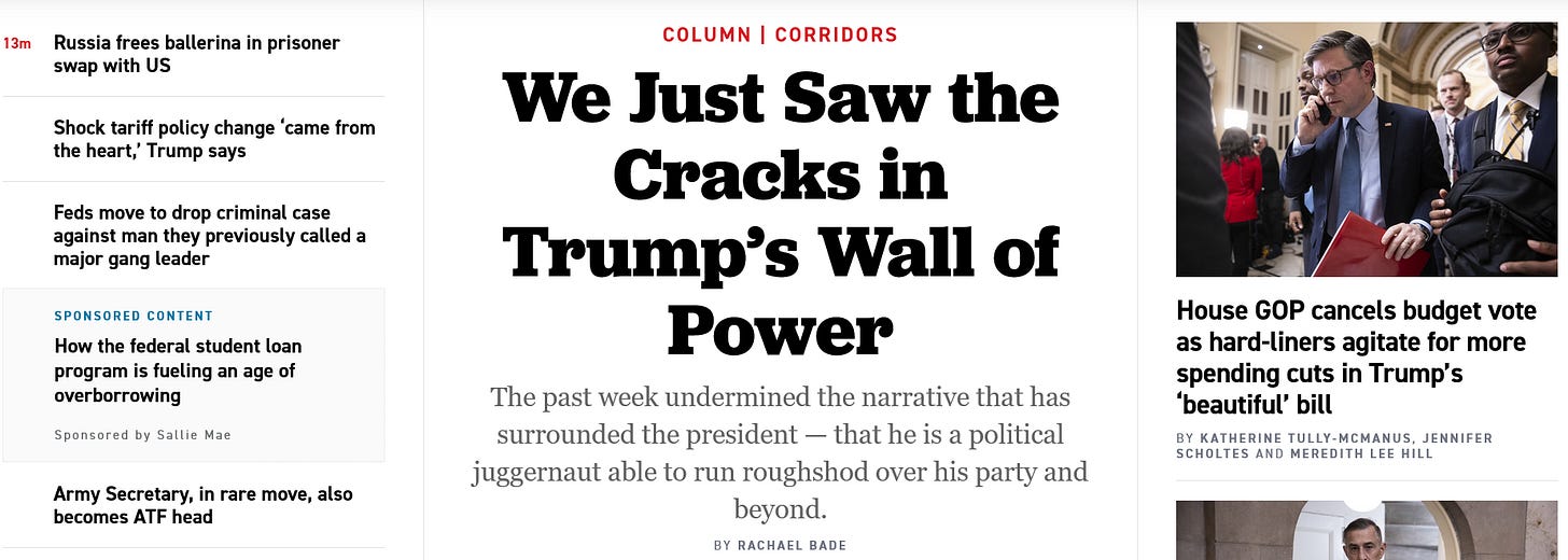 Enjoy Politico’s home page right now. For as we say here, little cracks can become big cracks…….