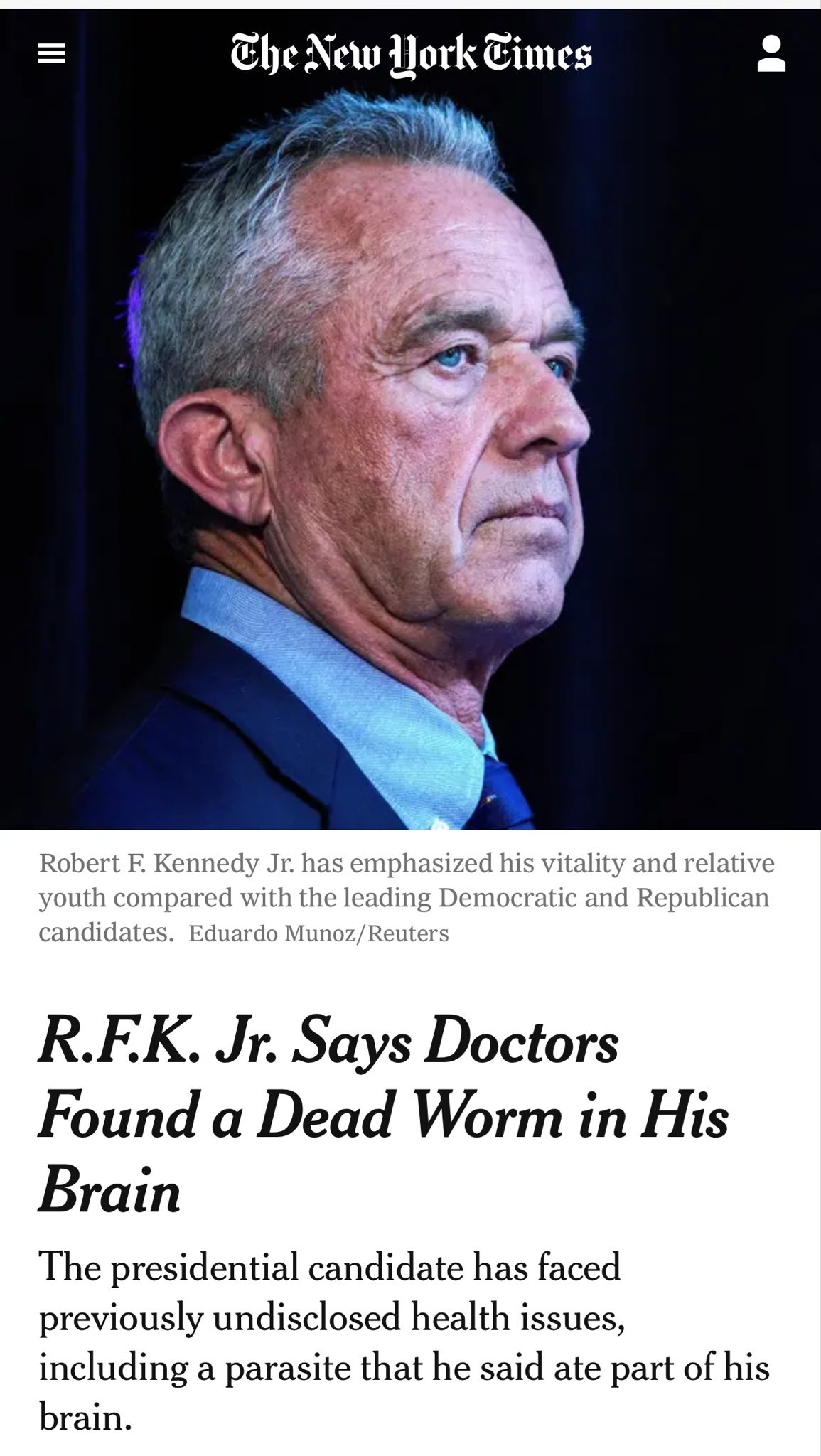 Brain Worms and Porn Stars - Yes, there are days where it feels that a hostile foreign power somehow got Trump and Kennedy to run to humiliate America in front of the world. Today is one of those days. Here’s a top story in the NY Times right now: