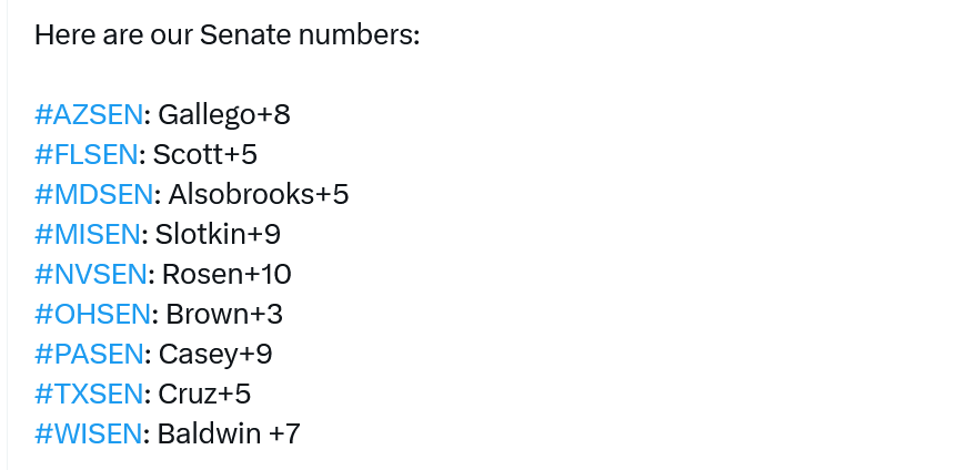 Unlike 2022 the data of late has shown a remarkable harmony with very few outliers or contradictory results. Dozens of dozens of polls taken nationally and in the states are telling the same story - we enter tonight’s debate with a modest lead, and as you as you have heard me say, we also enter the home stretch with a far greater capacity to close strong and win.