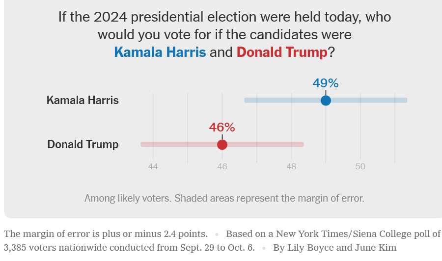 Happy Tuesday all. We’ve had some pretty shitty NYT polls this year so let us celebrate their new national poll which has Vice President Harris up 3, 49%-46%. This is 3 points higher than their last poll and her largest lead in the NYT poll since she became our candidate. Good morning everyone!!!!!!!!!!!!!!!!!!!!!!!!!!!!