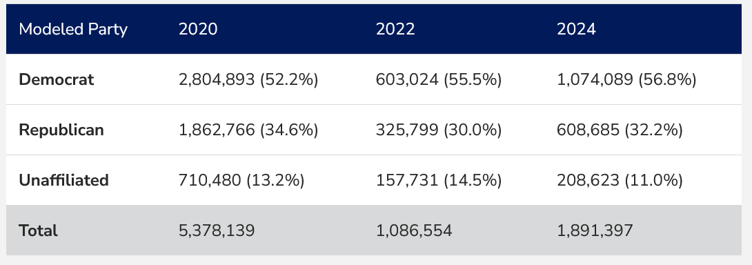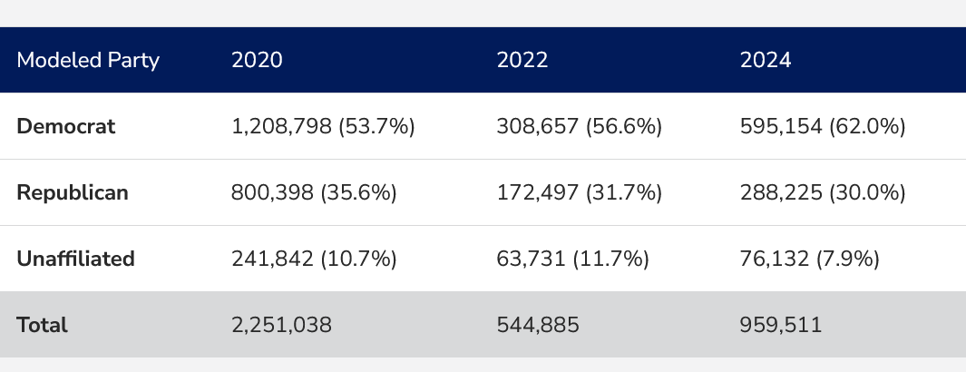 I also love this stat. So far Democratic Super Voters, those who vote the most and the ones we’ve been encouraging to Vote on Day 1, are voting in much higher percentages than either 2020 or 2022 at this point. Hard core Dems are bringing the intensity we need baby! For when Super Dems vote early, really early, it allows campaigns to start targeting lower propensity voters earlier, increasing our overall turnout and making it far more likely we win.