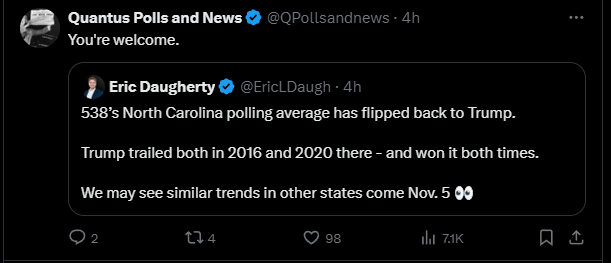 And here’s one of these red wave pollsters taking credit for moving the NC polling average to Trump: