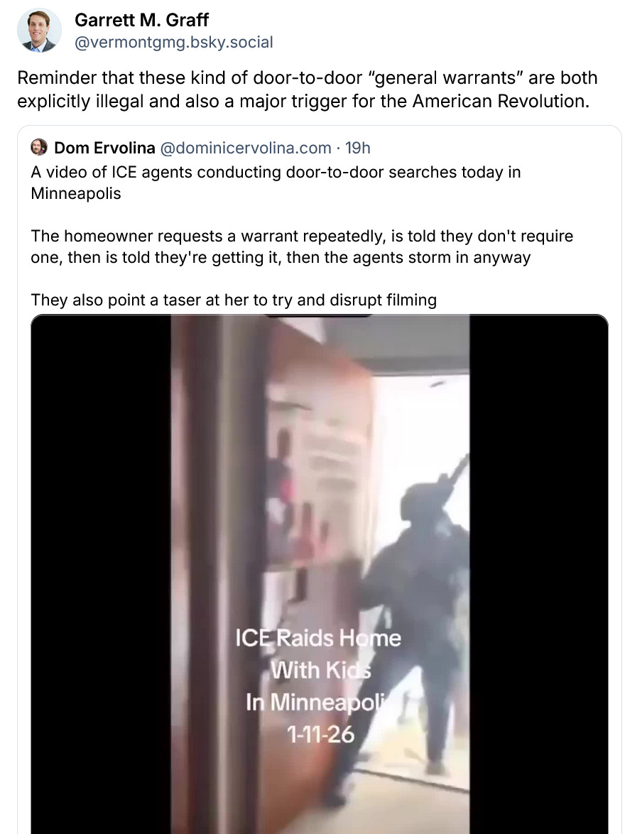I want to acknowledge that there is now a flood of video coming from Minnesota documenting the DHS/ICE/CBP terror campaign unfolding there. Here is one of the more compelling - a Marine yanked from her car and beaten: