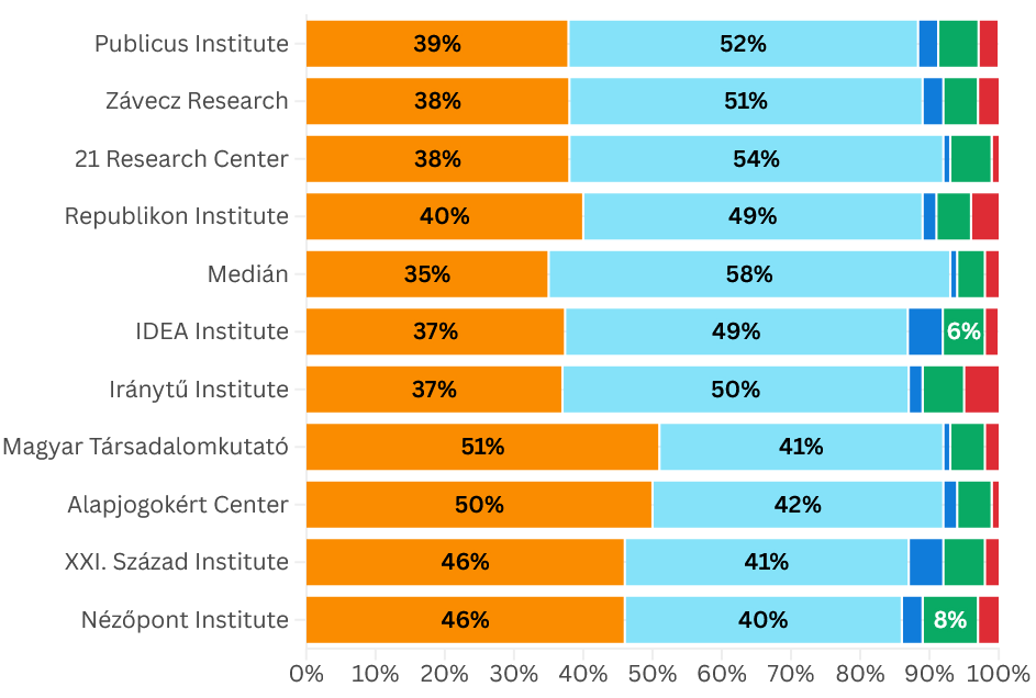 BOTTOM LINE: Most other pollsters have the opposition Tisza Party ahead of Orbán’s Fidesz by 20 points or more.