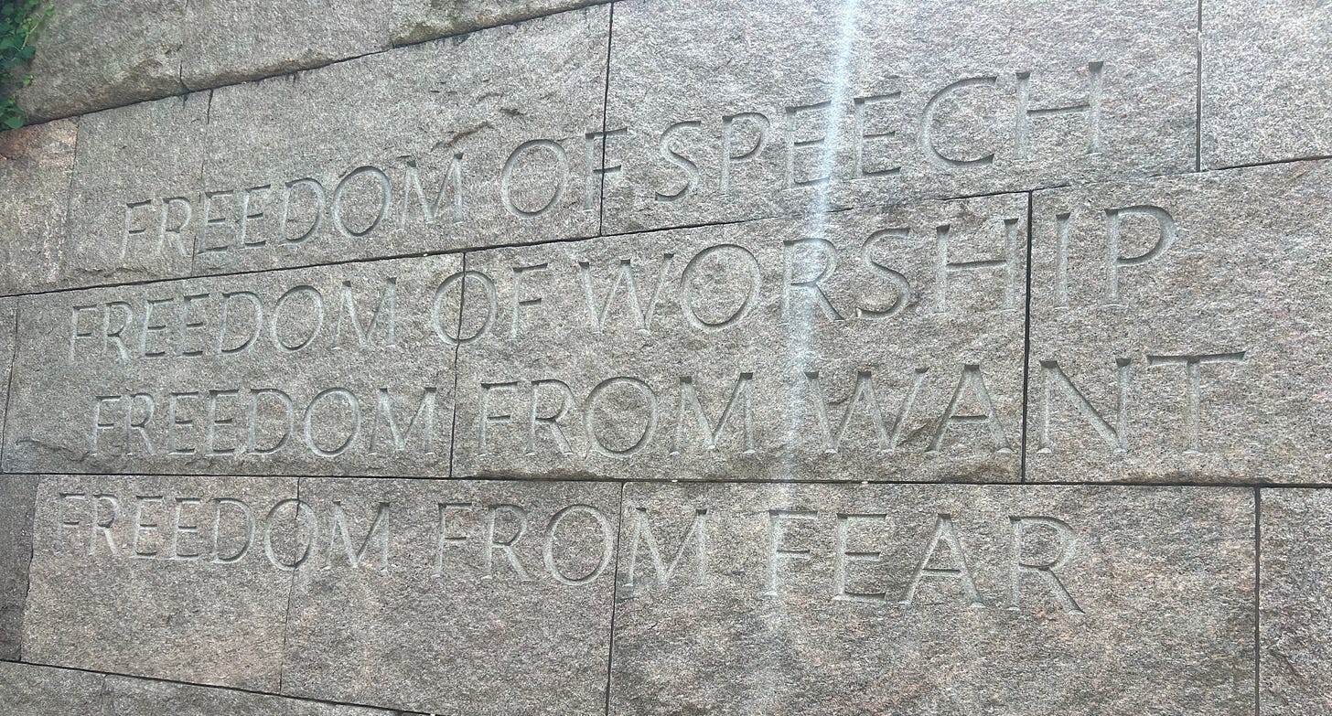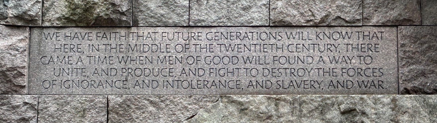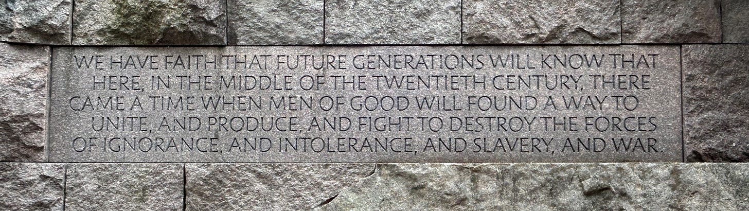 To do this our Democratic leaders and all of us must far more consciously see themselves not just as legislators or party leaders or grassroots activists but as actors in a global battle for freedom and democracy. We must come to see ourselves as heirs to the American Revolution and the Post WWII Four Freedoms global system that made freedom - not dominion - the founding organizing principle of our country and the world, and recognize that it is our obligation, our responsibility, to lead this global fight - as we have for 250 years. We must be warriors for the middle class and working people, AND proud American patriots fighting for freedom and democracy here and everywhere - for our Founders declared that our inalienable fights included not just the “pursuit of happiness” but “life” and “liberty” too. And we must summon the power of those great American patriots who came before - Washington, Jefferson, Lincoln, FDR, Dr. King - and other global freedom fighters - Churchill, Gandhi, Mandela - to inspire us in the years to come.