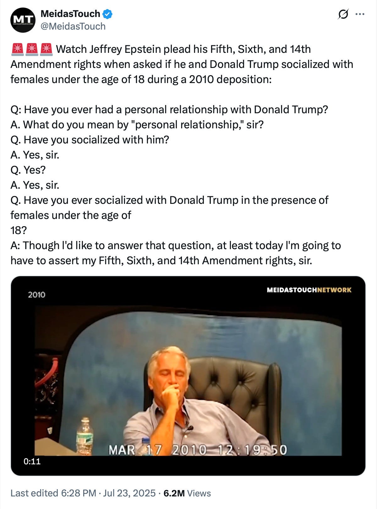 A reminder of how Epstein responded to questions about Trump in his 2010 filmed deposition: