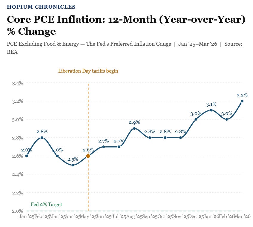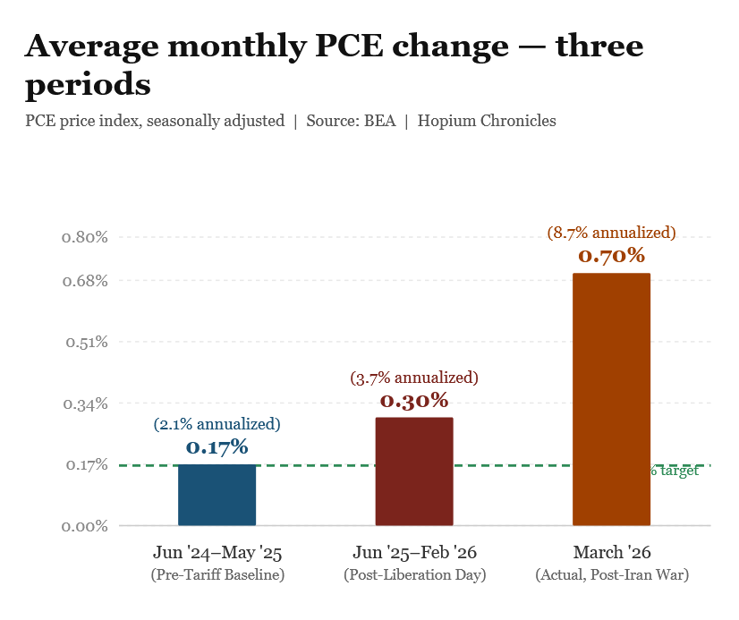 Here’s our an updated version of PCE (personal consumption expenditures). Of the 3 main inflation gauges PCE is the one favored by the Fed. Note that throughout our inflation charts you will see that Trump’s tariffs had caused inflation to rise and push it above the Fed target rate of 2% prior to the war.
