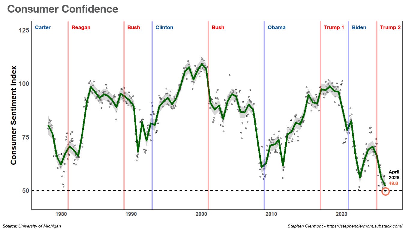 As I look at all this what I keep thinking is that as Trump was preparing to go to war he and his team had access to all this economic data showing inflation rising, job and economic growth slowing, and they went ahead with the war anyway. And here we are - inflation surging, the economy slowing, a war that has failed, his poll numbers tanking, consumer confidence plummeting, GOP mid-term prospects growing far dimmer - and rather than fixing it all he is fighting for his ridiculous bunker and attacking his enemies.
