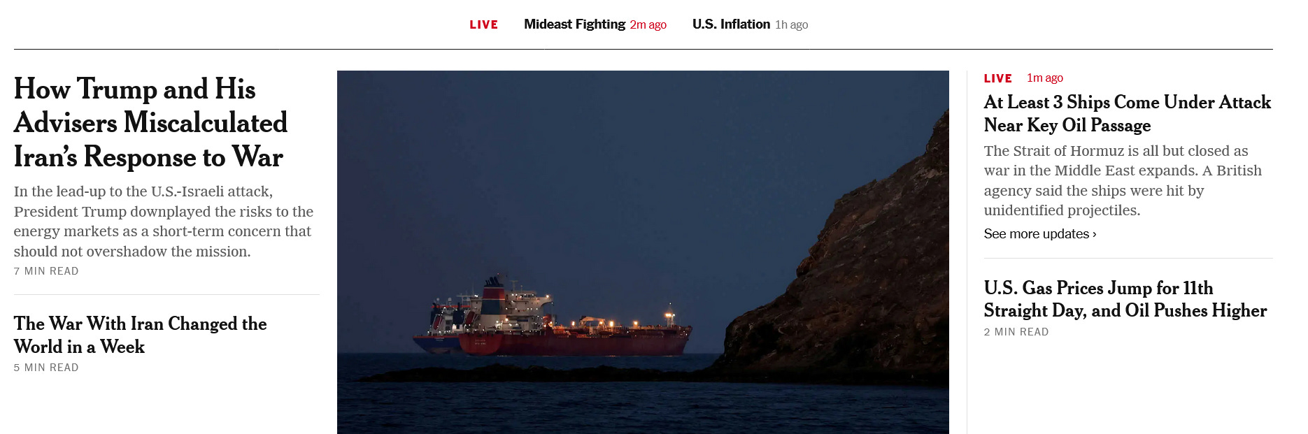 The extent of that miscalculation was laid bare in recent days, as Iran threatened to fire at commercial oil tankers transiting the Strait of Hormuz, the strategic choke point through which all ships must pass on their way out of the Persian Gulf. In response to the Iranian threats, commercial shipping has come to a standstill in the Gulf, oil prices have spiked, and the Trump administration has scrambled to find ways to tamp down an economic crisis that has triggered higher gasoline prices for Americans.