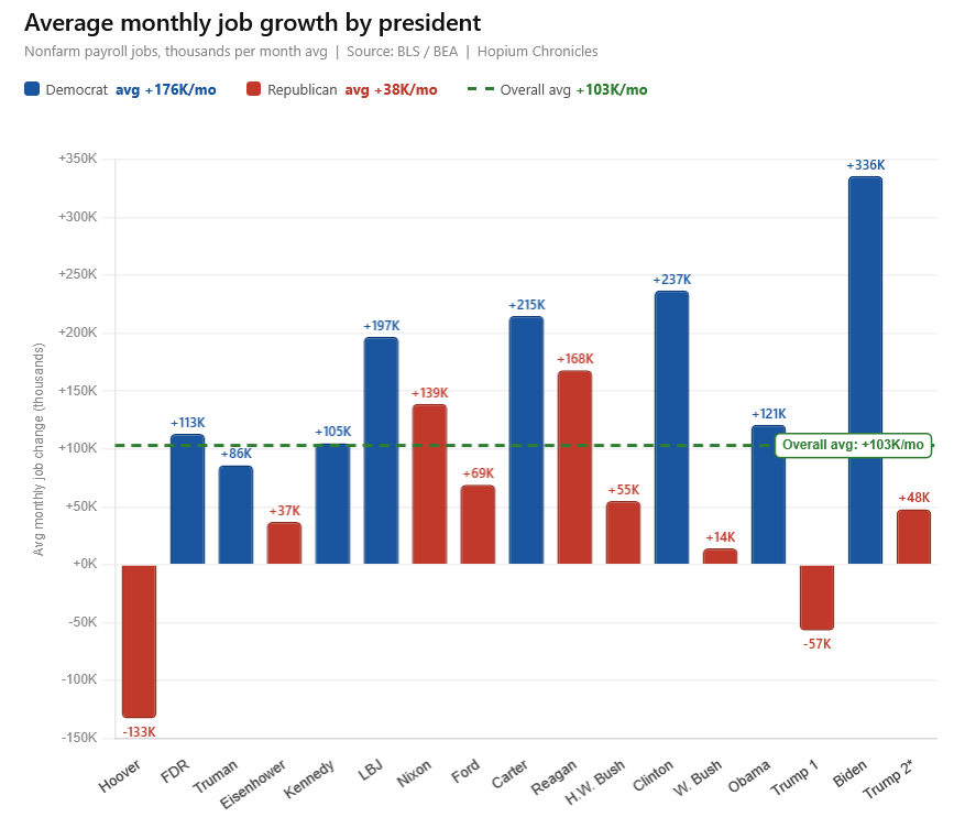 Here’s is the job growth we’ve seen so far under Trump compared to other Presidents. Like GDP growth the worst net performance since Hoover: