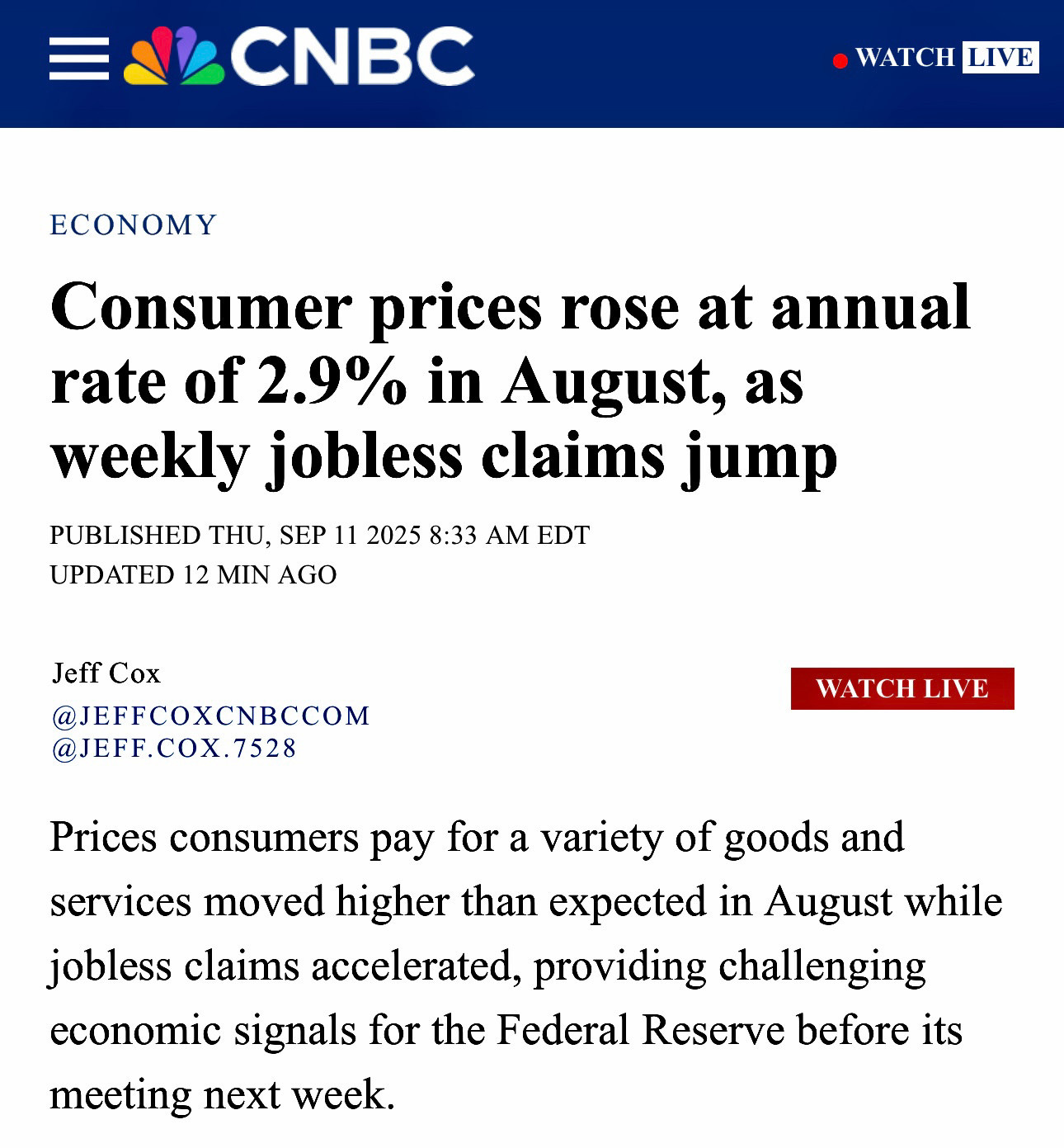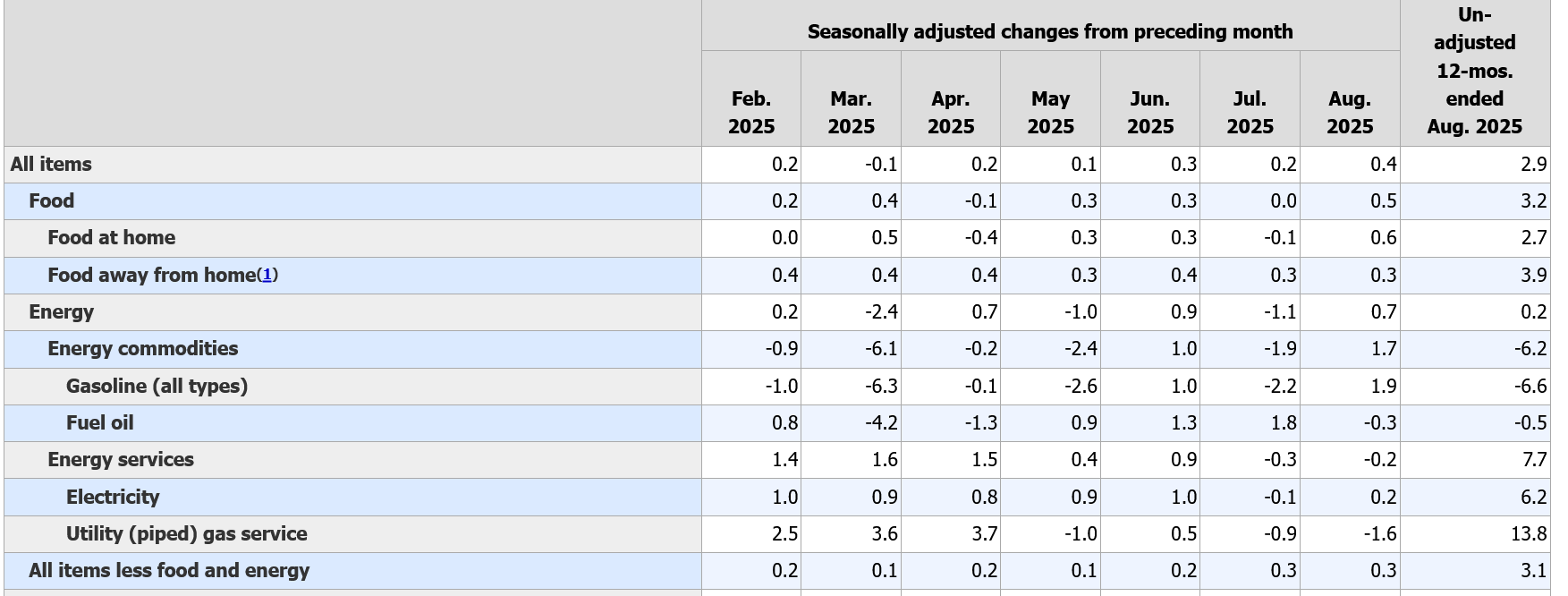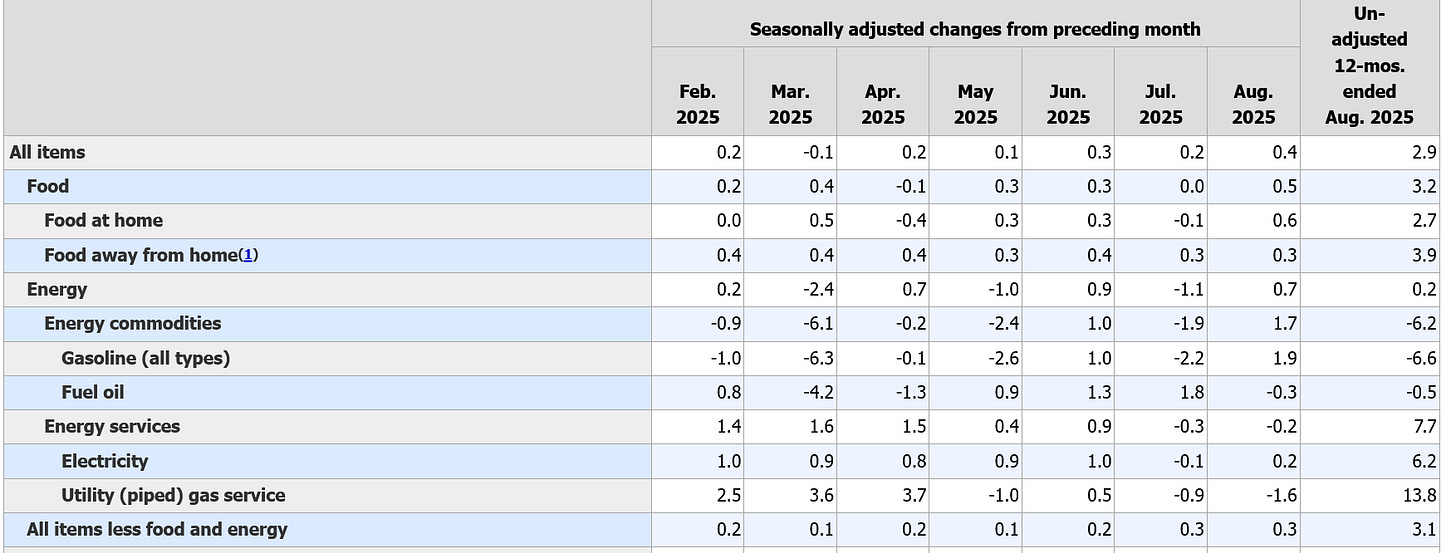 Morning all. We just got the monthly BLS Consumer Price Index report for August and it shows inflation surging. Look at these jumps in the overall rate, food and energy. This is ugly stuff.