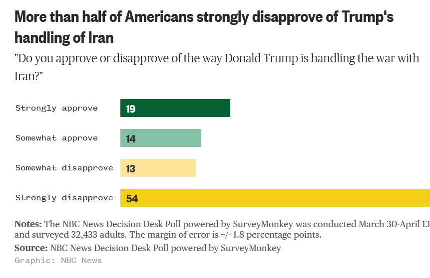Republicans in both chambers voted down Democratic efforts to rein in this terrible war last week, laying full claim to it as a party. Democrats cannot, and should not, stop fighting to bring an end to the war for Congressional Republicans are acting recklessly and dangerously by following Trump down this dark path. Their denial about the gravity of what he has done, the historic harms he has caused, the damage to America’s standing in the world, the lawlessness and Mad Kingy nature of it all must come to an end. This ain’t locker room talk, and there is no magical way out of this one. We’ve been through this with Trump before - COVID - and we know how that ended - hundreds of thousands of Americans died, unnecessarily.