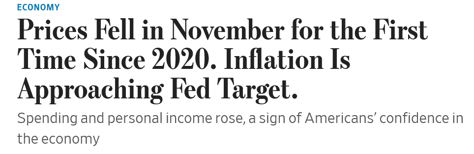 Key Inflation Measure *Falls* in Nov, 2023 Ending on An Upbeat Note, MAGA = Frauds, Liars, Charlatans, Thieves, Insurrectionists