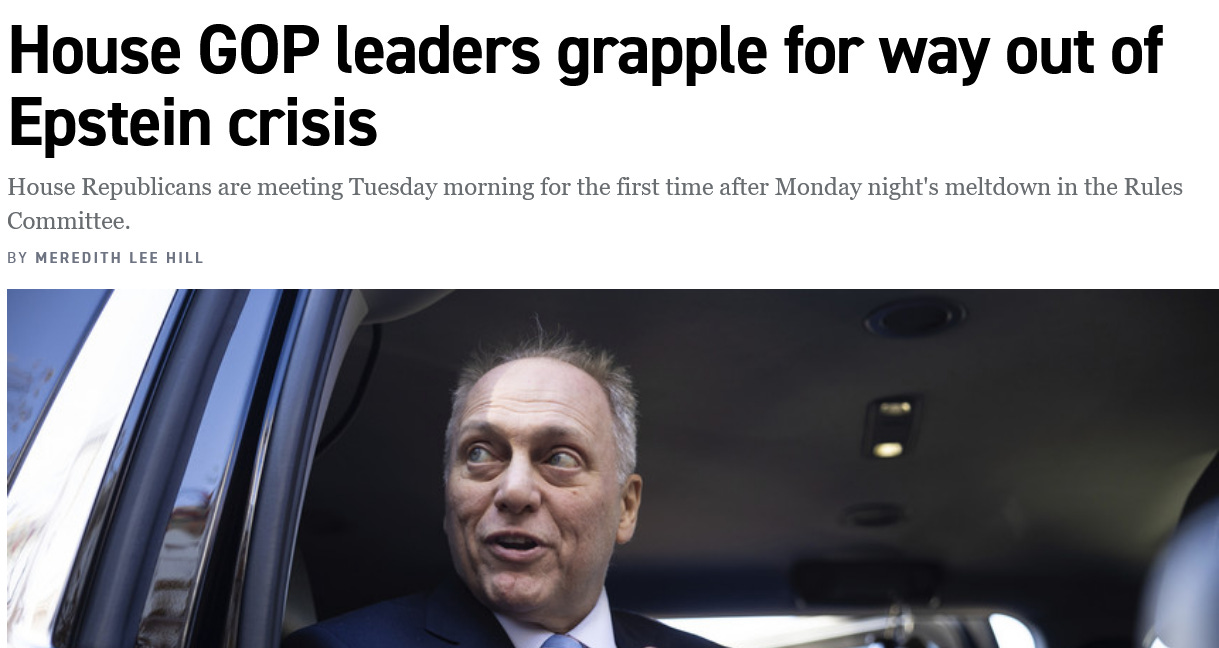 This week is shaping up to be a bust in the House. Speaker Mike Johnson’s handling of the Jeffrey Epstein situation has frozen the chamber. Much more on this below.