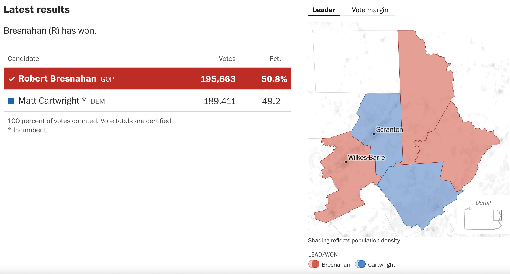 Donald Trump won this district by 8.5 points in 2024, and the freshman Republican in the seat, Rob Bresnahan, defeated the incumbent Democrat, Rep. Matt Cartwright by 1.6 points.