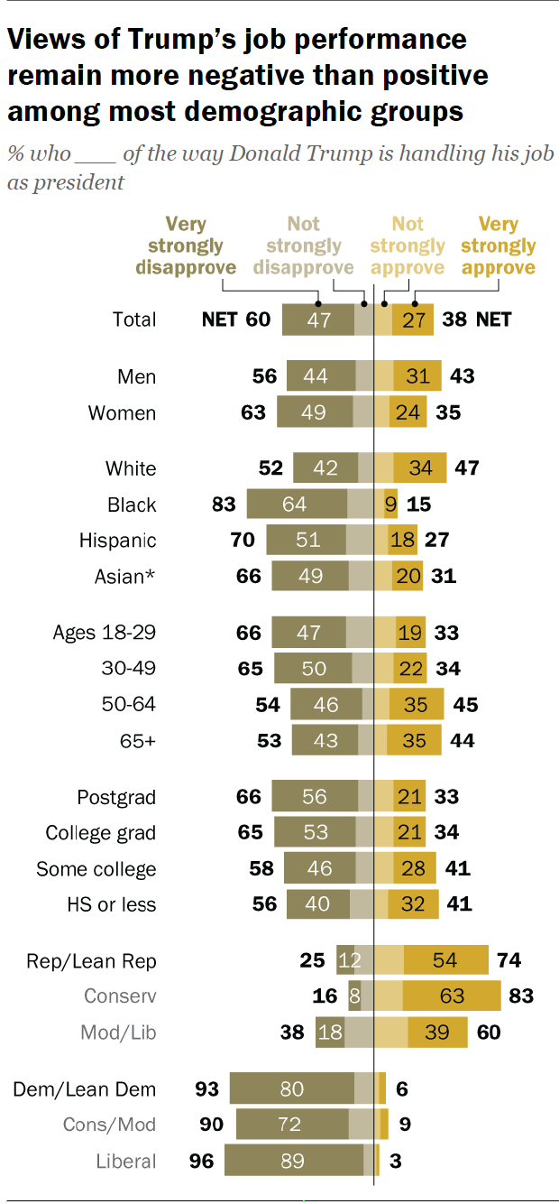 To add to this sense of failure - Newsom called Trump a “failed President” yesterday - Trump got the worst high-integrity poll of his 2nd term yesterday. The highly respected Pew Research poll clocked in with a 38% approve, 60% disapprove reading. Ruh-roh big orange guy! Here’s the breakdown: