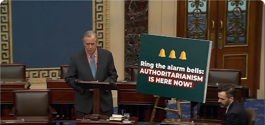 We talked about Senator Merkley’s inspiring Senate speech; the targeting of Portland and Oregon by Trump and his regime; her recent visit to the well known ICE detention facility in Portland, the birth place of the frogs and inflatables; the importance of ridicule and mockery in challenging strongmen; and her profound disappointment in the cowardly Speaker keeping the House in recess for much of the last three months. Here is what she told me: