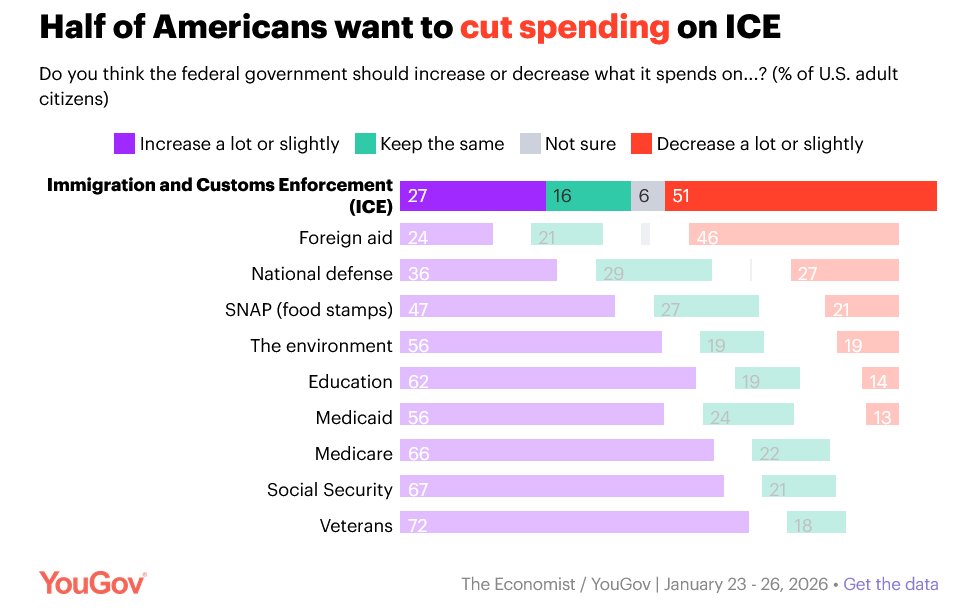 There has been a lot of polling this week and it’s now clear Trump-Vance-Miller have lost the argument about ICE, badly. Let’s me now share two polls that stood out this week.