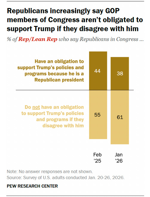 And only 38% of GOP voters now believe their Members of Congress should continue defending the indefensible (Trump that his):