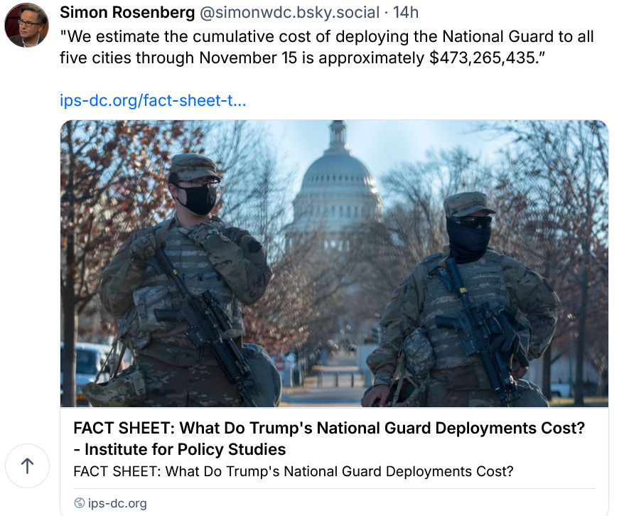 The cost for Trump’s ridiculous sending of the National Guard to our cities is going to be in the many billions: