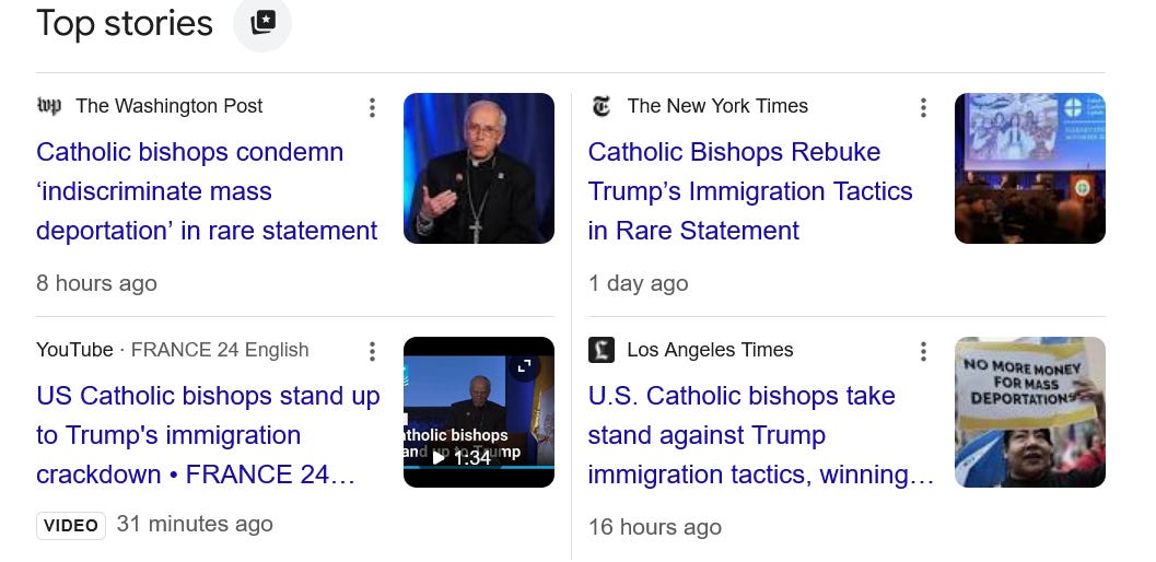 Yesterday the US Conference of Catholic Bishops issued a very aggressive statement condemning Trump’s inhumane treatment of people here in the US: