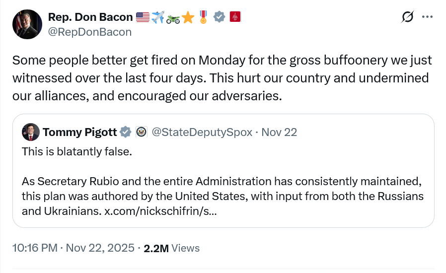 Stand with Ukraine and our European allies, and far more forcefully challenge Trump’s traitorous efforts to sell out the US and the West to Russia; demand Congress rebuke/issue a no confidence vote on his 28 point “plan”