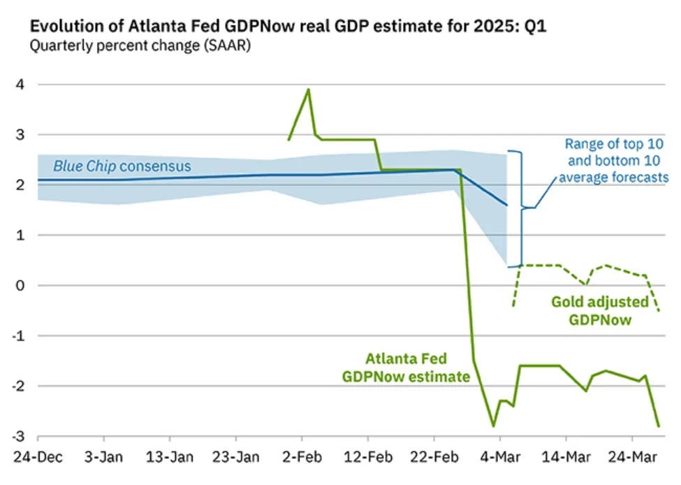 As I look back at the week the Atlanta Fed GDPNow estimate captures current Trumpism more powerfully perhaps than any words can. 7 points off GDP in two months!!!!!! Trump inherited the strongest economy in the Western world and through this madness immediately wrecked it. It is literally unbelievable.