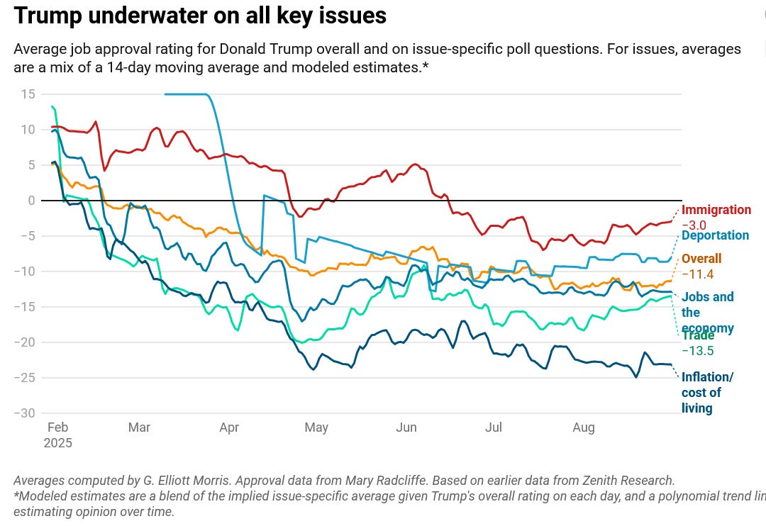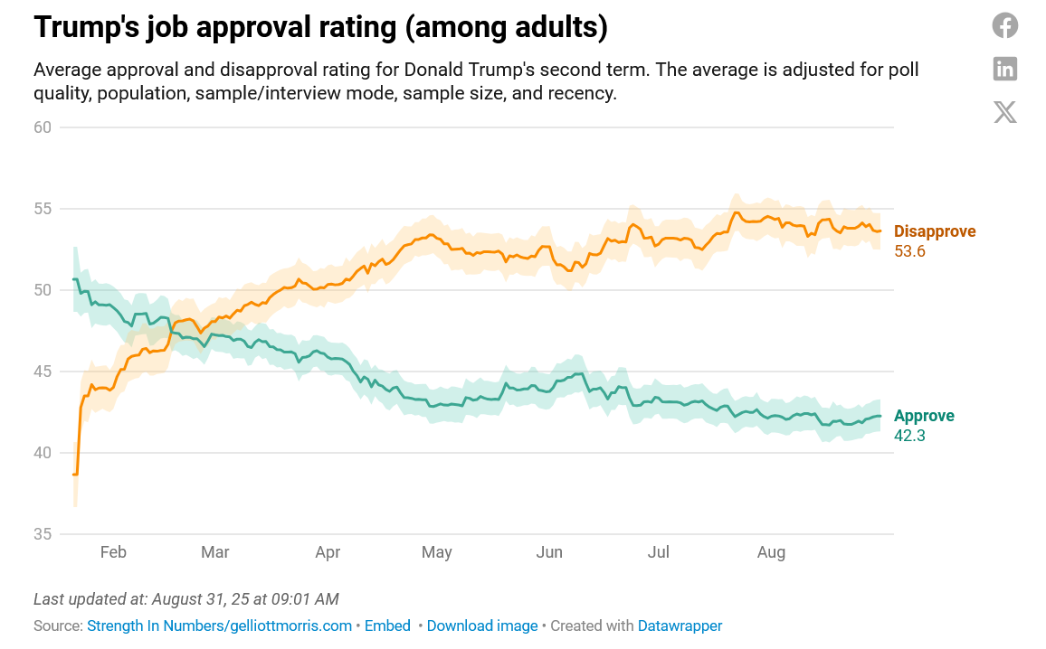 I don’t know what happened with Trump’s health this week, but as we’ve been saying for months now he is in clear cognitive, physical and political decline; and that this sense that his powers are ebbing is part of what is driving him deeper into unhinged and dangerous authoritarianism. We got polls this week that showed him now losing the argument about his illegal occupation of DC, as he has lost or is losing the argument about almost everything he has done these past several months. Despite his information superiority he is losing his power of persuasion, and it appears that a clear majority of the country is no longer available to him. For they have gone too far; they are doing real harm to the country and working people; there is just way too much crazy; and the People are not happy about it all.