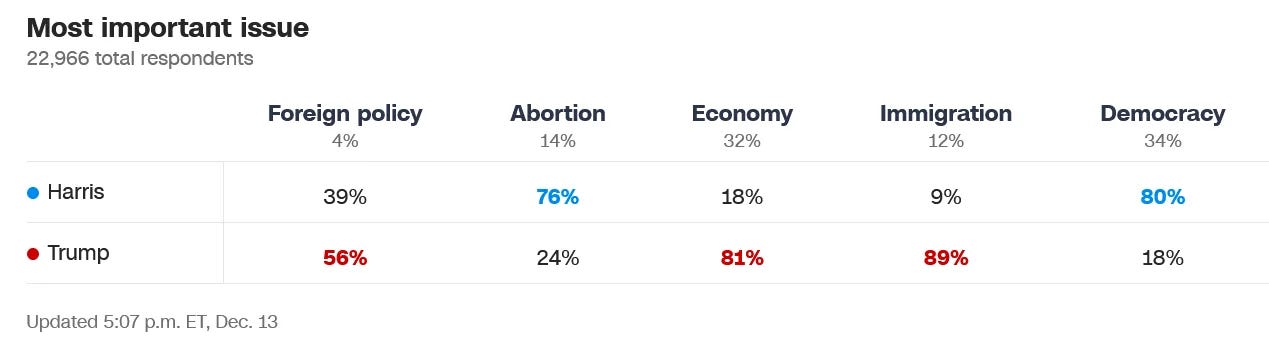 A reminder of the “most important issue” question from the 2024 Exit Polls: